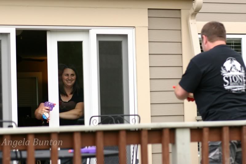 After having cake and ice cream, why not have a little water fight? Natalie was being tag teamed by Joe and Jason. Seems a little unfair but she put up the good fight! And Granter was completely unfazed as he chilled out on his swing.